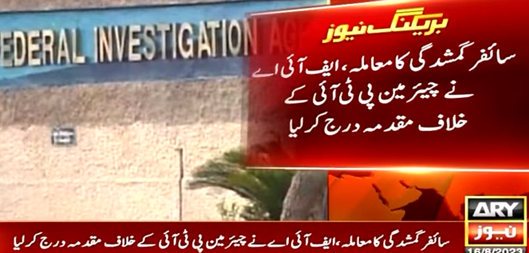 اے آر وائی نیوز کے مطابق سائفر گمشدگی معاملے پر اہم پیش رفت ہوئی ہے اور فیڈرل انویسٹی گیشن ایجنسی (ایف آئی اے) نے چیئرمین پی ٹی آئی کے خلاف مقدمہ درج کر لیا ہے۔ یہ مقدمہ گزشتہ روز ایف آئی اے کے انسداد دہشتگردی ونگ میں سنگین دفعات کے تحت درج کر لیا گیا ہے۔