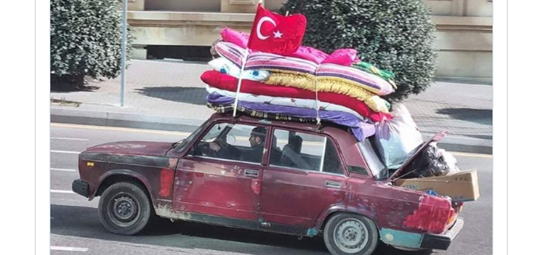 آزربائیجان کا ایک شہری گھر کا آدھا سامان اپنی پرانی گاڑی میں لوڈ کرکے ترکیا روانہ۔ کیا جذبات ہیں۔ اسے ترکیا پہنچنے میں کم از کم 20 گھنٹے لگیں گے۔ تقریباً 1400 کلومیٹر کا فاصلہ ہے۔ pic.twitter.com/JpwmeKvW5p