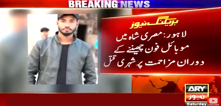 لاہور کے علاقے مصری شاہ میں موبائل فون چھیننے کے دوران مزاحمت کرنے پر ملزمان نے شہری کو قتل کردیا اور فرار ہوگئے۔