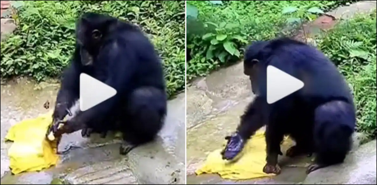 سوشل میڈیا پر ایک ویڈیو تیزی سے وائرل ہورہی ہے جس میں ایک چمپینزی کو انسانوں کی طرح کپڑے دھوتے ہوئے دیکھا جاسکتا ہے۔