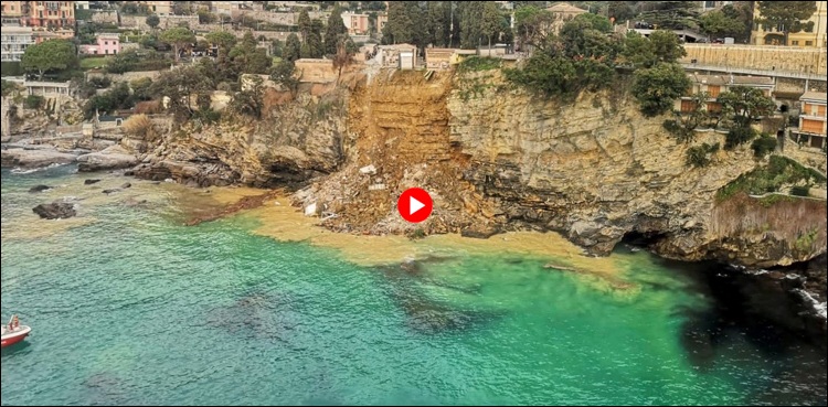 #Camogli. Il video del #crollo del #cimitero da parte di alcuni operai che si erano messi in sicurezza poco prima che il fronte collassasse. pic.twitter.com/eFxCeEPWxb