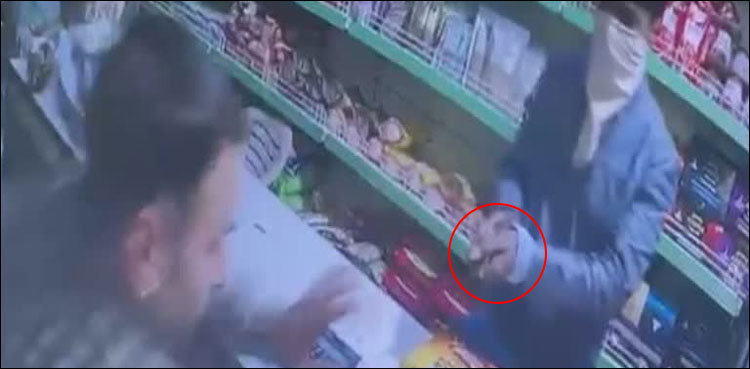 ڈاکو نے اسلحے کے زور پر دکاندار کو لوٹنا چاہا لیکن بندوق میں گولی پھنس گئی، موقع کو غنیمت جانتے ہوئے دکاندار نے اپنی پستول نکال پر ڈاکو پر گولیاں برسا دیں جس کے نتیجے میں مسلح شخص کے ہاتھ اور کمر میں گولی۔