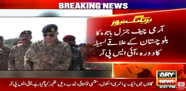 راولپنڈی: آرمی چیف جنرل باجوہ نے بلوچستان کےعلاقے لسبیلہ کا دورہ کیاہے۔
