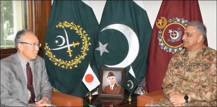 آئی ایس پی آر کے مطابق ملاقات میں باہمی دلچسپی اور علاقائی سیکیورٹی سے متعلق امور پر تبادلہ خیال کیا گیا۔ جاپانی سفیر نے خطے میں کشیدہ فضا کو کم کرنے کے لیے پاکستانی کوششوں کی تعریف کی۔