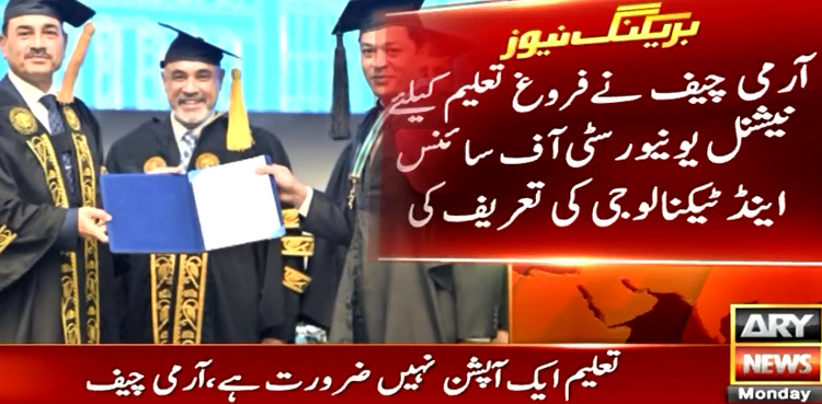 آئی ایس پی آر کے مطابق نیشنل یونیورسٹی آف سائنسز اینڈ ٹیکنالوجی (نسٹ) کا سالانہ کانووکیشن یونیورسٹی کے مرکزی کیمپس اسلام آباد میں منعقد ہوا۔