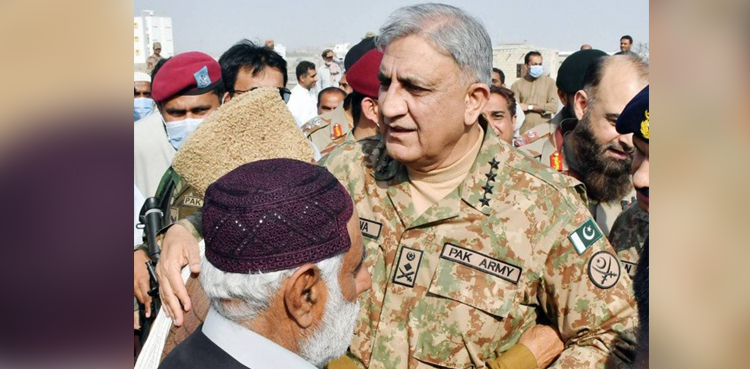 روجھان: آرمی چیف جنرل قمر جاوید باجوہ کا کہنا ہے کہ پاک فوج سیلاب متاثرین کے ساتھ ہے، نواجون متاثرین کا بوجھ کم کرنے میں کوئی کسر نہ چھوڑیں۔