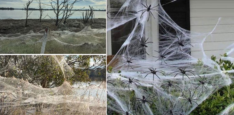 آسٹریلیا: وکٹوریہ میں سیلاب کے بعد اچانک ہزاروں مکڑیاں نکل آئیں اور درختوں اور پیڑوں پر وسیع پیمانے پر جال بنا لئے۔