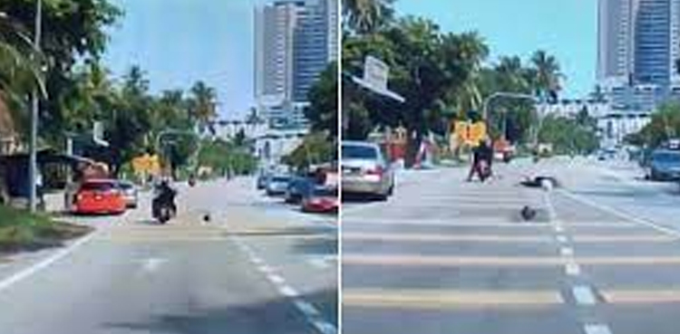 ملائیشیا میں موٹر سائیکل پر سوار خاتون پر اچانک ناریل آ گرا تاہم وہ موت کے منہ میں جانے سے بال بال بچ گئیں۔