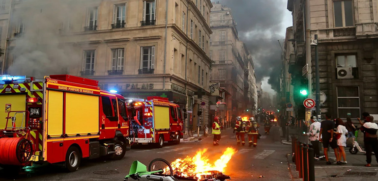 وزارت داخلہ کا کہنا ہے کہ آنے والے گھنٹے فیصلہ کن ہیں، فرانسیسی حکومت کے مطابق امن و امان کی بحالی کے لیے تمام آپشن زیرِغور ہیں، ملک کے بڑے شہروں میں تیسرے روز بھی احتجاج اور جلاؤ گھیراؤ کے واقعات جاری ہیں، مختلف شہروں میں پُرتشدد مظاہرے دیکھنے میں آرہے ہیں۔