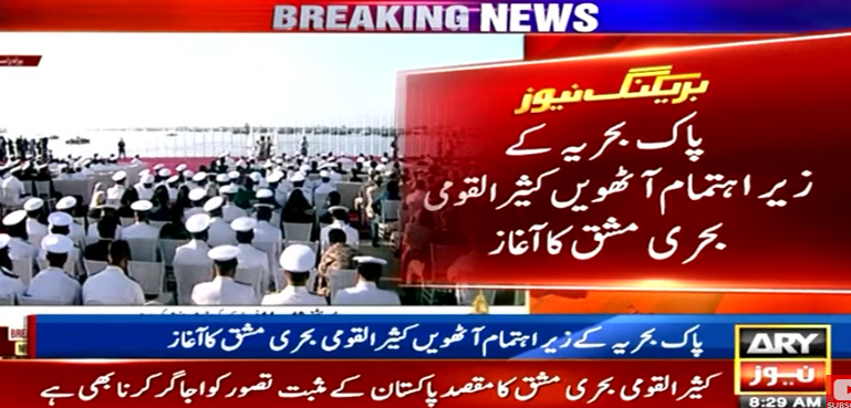 پاک بحریہ کے زیراہتمام 8 ویں کثیر القومی بحری مشق کا آغاز ہوگیا ہے اس بحری امن مشن میں 50 سے زائد ممالک شریک ہیں۔