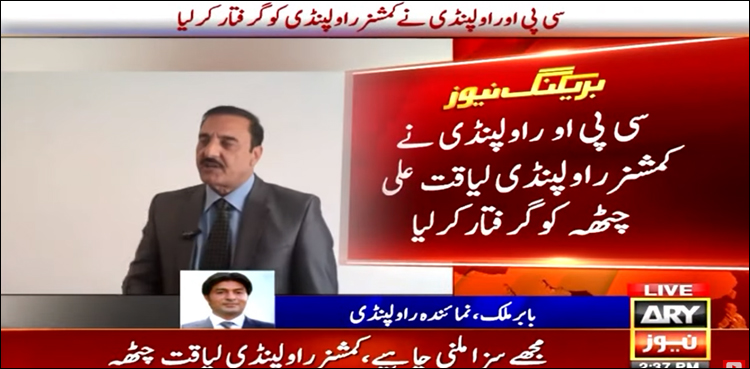 سی پی او راولپنڈی نے کمشنر راولپنڈی لیاقت علی چٹھہ کو گرفتار کر لیا
