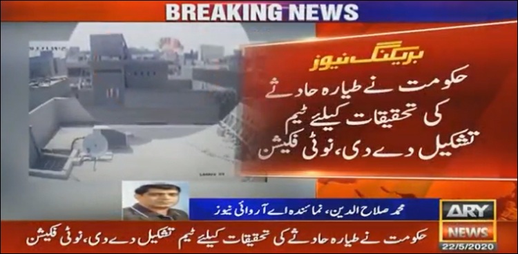 یاد رہے کہ پنجاب کے دارالحکومت لاہور سے 98 مسافروں کو لانے والا طیارہ (ایئربس) کراچی ایئرپورٹ کے قریب واقع ماڈل کالونی میں رہائشی آبادی پر گر کر تباہ ہوا۔