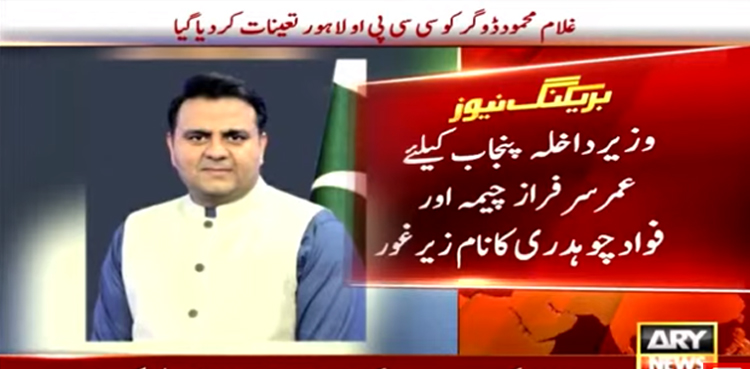 تفصیلات کے مطابق پنجاب کابینہ سے متعلق اہم وزارتوں پر مشاورت جاری ہے ، وزیر داخلہ پنجاب کے لئے عمرسرفراز چیمہ اور فواد چوہدری کا نام زیر غور ہے۔