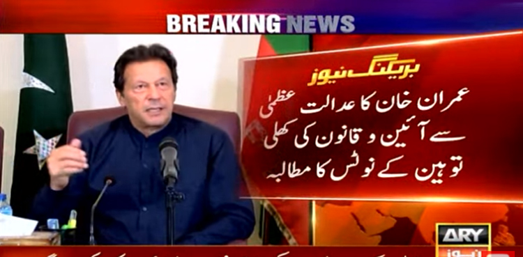 اسلام آباد : سابق وزیراعظم عمران خان نے پنجاب میں پیدا شدہ صورتحال اور دستور شکنی کی شدید مذمت کرتے ہوئے عدالت عظمیٰ سے آئین و قانون کی کھلی توہین کے نوٹس کا مطالبہ کردیا۔