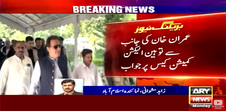 عمران خان نے الیکشن کمیشن میں تحریری جواب جمع کروایا ہے جس میں کہا گیا ہے کہ الیکشن کمیشن کے پاس یہ کیس سماعت کرنےکا اختیار نہیں لہذا نوٹسز واپس لئےجائیں۔