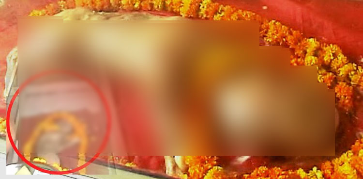 شہریوں کی جانب سے مردہ بچھڑے کو ہار پہناتے ہوئے دیکھا گیا اور اسے شیشے کے ڈبے میں محفوظ کردیا گیا۔