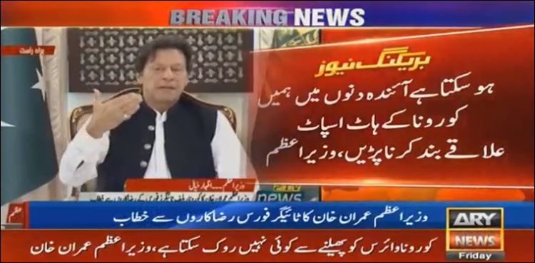وزیراعظم عمران خان نے ٹائیگر فورس کے رضاکاروں سے خطاب کرتے ہوئے کہا کہ برطانیہ اور پاکستان نے رضاکاروں کی رجسٹریشن شروع کی، ہم نے 10 لاکھ رضاکاروں کی رجسٹریشن شروع کی، ایک لاکھ 75 ہزار رضاکاروں نے کام کیا، محدود لاک ڈاؤن کے لیے ٹائیگر فورس کو ٹریننگ دی جائے گی۔