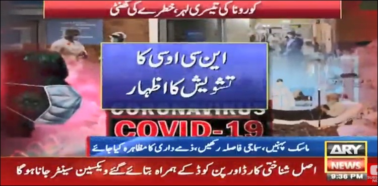 نیشنل کمانڈ اینڈ آپریشن سینٹر نے کرونا کی تیسری لہر اور بڑھتے ہوئے کیسز پر تشویش کا اظہار کرتے ہوئے پنجاب اور خیبرپختونخواہ میں مکمل لاک ڈاؤن کا عندیہ دے دیا۔ این سی او سی نے شہریوں کو خبردار کیا کہ وہ کرونا ایس او پیز پر سختی سے عمل درآمد کریں کیونکہ صورت حال اب تیزی سے خراب ہورہی ہے۔