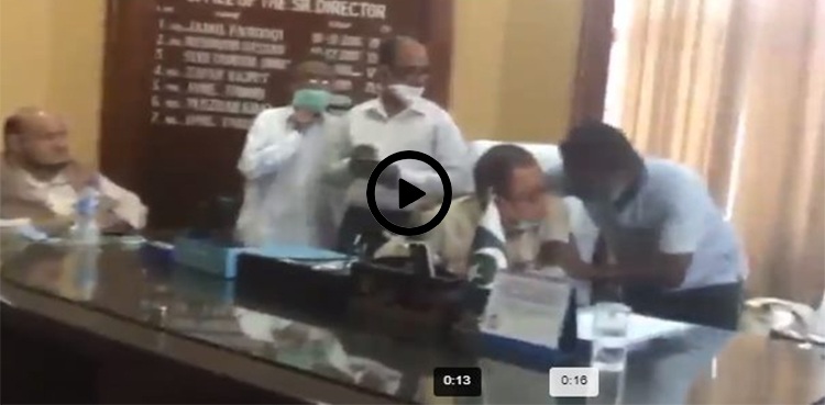 کراچی میں تنخواہ روکنے پر کورونا مریض نے انوکھا انتقام لیتے ہوئے افسرِ بالا کو بوسہ دیا اور دیگر افسران کے گلے لگ گیا۔