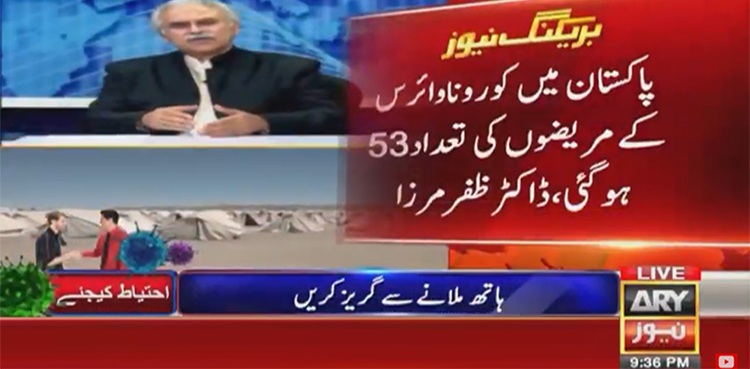 وزیراعظم کے معاون خصوصی ڈاکٹر ظفر مرزا کا کہنا ہے کہ پاکستان میں کورونا وائرس کیسز کی تعداد53 ہو گئی ہے، ملک میں 13لیبز میں کورونا ٹیسٹ کرانے کی سہولت موجود ہے، ہم نےاپنی تشخیصی صلاحیت میں اضافہ کیا ہے۔