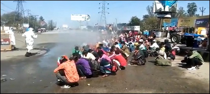 تفصیلات کے مطابق کرونا وائرس کے پیش نظر ہونے والے لاک ڈاؤن کے باعث ملک کے مختلف شہروں سے اپنے گاؤں لوٹنے والے مزدوروں کو ان کے ضلع پہنچنے پر مقامی انتظامیہ نے وائرس کے خدشے کے باعث لائن میں بٹھا دیا اور اور ان پر سینیٹائزر کا اسپرے کردیا، جس کی وجہ سے ان لوگوں کی آنکھوں میں جلن ہونے لگی۔