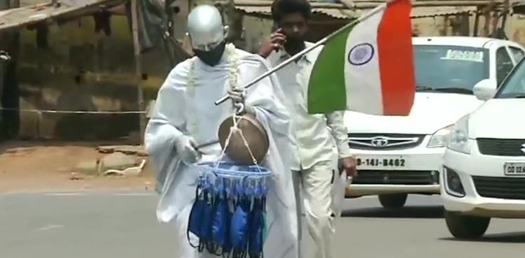 Odisha: A man dressed as Mahatma Gandhi walked around in slum areas near AIIMS in Bhubaneswar and distributed masks & hand sanitizers among the people. #COVID19 pic.twitter.com/gm89HcbZTv