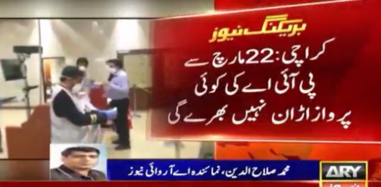 پاکستان ایئرلائن نے بھی وائرس کا پھیلاؤ روکنے کےلیے 22 مارچ سے بیرون ملک جانے والی پروازوں کا آپریشن عارضی طور پر معطل کرنے کا اعلان کیا ہے۔