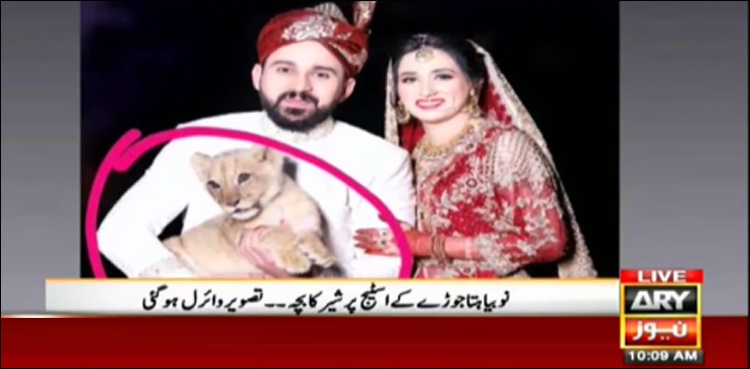 لاہور: انٹرنیٹ پر ان دنوں پاکستان سے تعلق رکھنے والے دلہا دلہن کی تصاویر وائرل ہورہی ہیں جنہوں نے فوٹو شوٹ کے لیے شیر کے بچے کا استعمال کیا۔