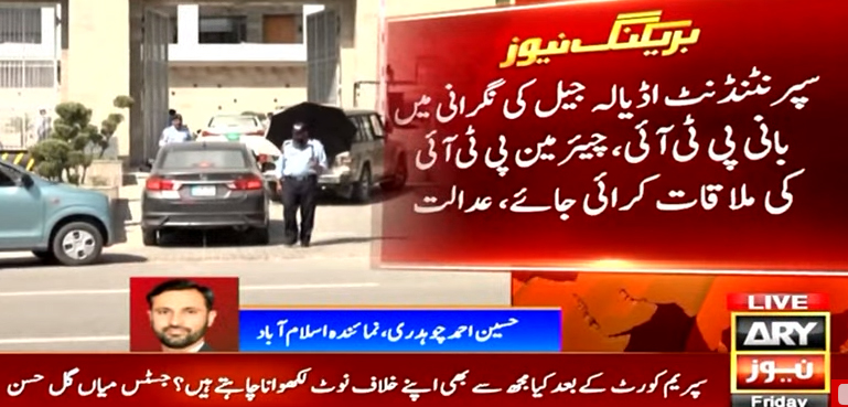 عدالت نے حکم دیا ہے کہ سپرنٹنڈنٹ اڈیالہ جیل کی نگرانی میں پاکستان تحریک انصاف کے بانی اور چیئرمین پی ٹی آئی کی ملاقات کرائی جائے۔