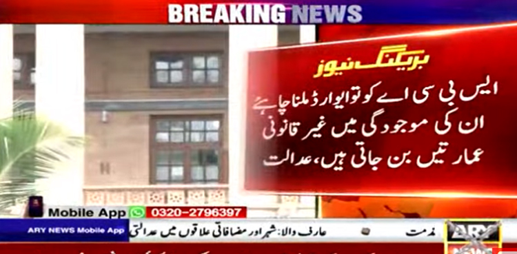 عدالت کا کہنا تھا کہ ایس بی سی اےنےاپنی رپورٹ غیرقانونی تعمیرات کوتسلیم کیا، 8 منزلہ عمارت کسی منظوری کے بغیر تعمیر کردی گئی۔