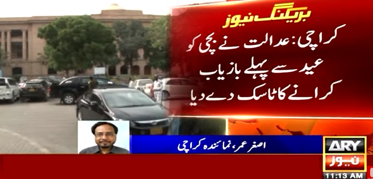 سندھ ہائیکورٹ میں چار سالہ بچی سمیت دیگر شہریوں کی بازیابی کیس کی سماعت ہوئی عدالت نے بچی کو عید سے قبل بازیاب کرانے کا حکم دے دیا۔