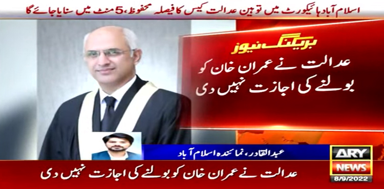 بعد ازاں عدالت نے ان کے خلاف توہین عدالت کی کارروائی مزید آگے بڑھانے اور نہ بڑھانے سے متعلق فیصلہ محفوظ کیا اور پھر پانچ منٹ بعد سنا دیا۔