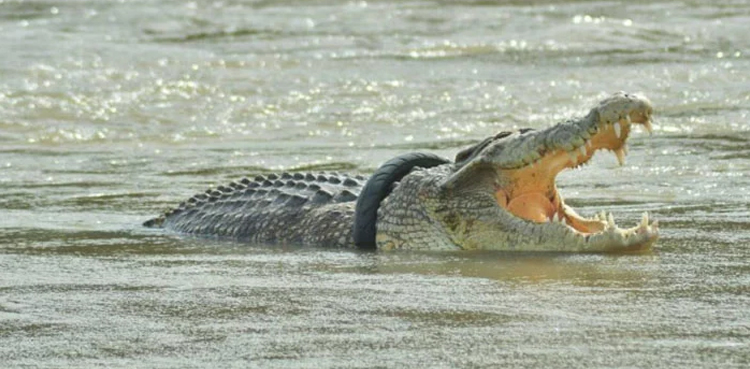 ٹائر کو مگر مچھ کے گلے میں پھنسے کئی برس گزر چکے جس کے باعث مقامی آبادی نے اسے ‘ہار والا مگر مچھ’ کا لقب دے دیا۔