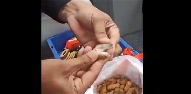 ویڈیو میں دیکھا جاسکتا ہے کہ مونگ پھلی اور گوشت میں سعودی عرب، قطر اور عمان کی کرنسی (ریال) موجود تھے جبکہ دیگر اشیاء میں یورو اور کویتی دینار بھی موجود تھے۔