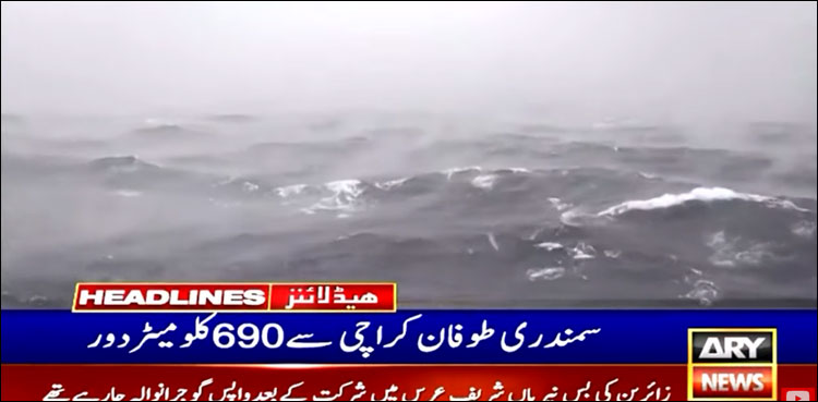 محکمہ موسمیات کا کہنا ہے کہ طوفان کا فاصلہ ٹھٹھ سے 670 اور اورماڑہ (بلوچستان) سے 720 کلومیٹر رہ گیا ہے، طوفان کے اردگرد ہوائیں 180 سے 200 کلو میٹر فی گھنٹہ کی رفتار سے چل رہی ہیں اور طوفان سمندر میں 40 فٹ بلند لہریں پیدا کر رہا ہے۔