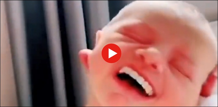 والد نے جو ویڈیو بنائی اُس میں بچے کے چہرے پر ہنسی دیکھی جاسکتی ہے جس میں اُس کے دانت بھی واضح طور پر نظر آرہے ہیں۔