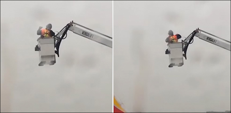 ویڈیو میں دیکھا جاسکتا ہے کہ ایئرپورٹ ملازم طیارے پر سے برف بھی ہٹا رہا ہے اور ساتھ رقص کرکے مسافروں کو محظوظ بھی کررہا ہے۔
