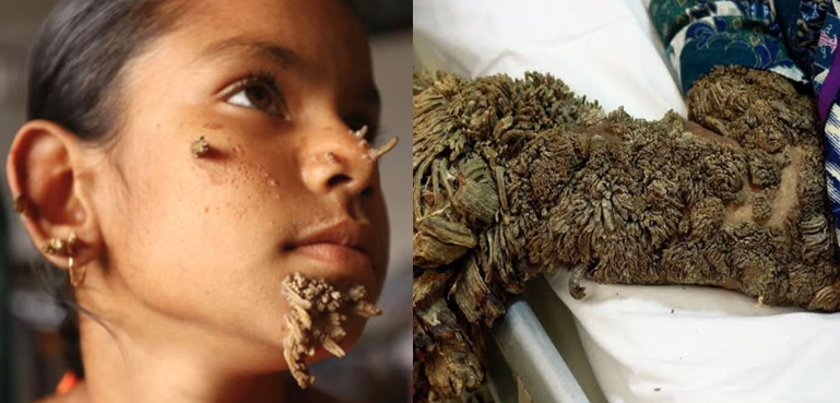 ڈاکٹروں کا کہنا ہے کہ یہ ایک نایاب جنیاتی بیماری ہے جس میں انسانوں میں بالخصوص ہاتھوں اور پیروں میں درختوں کی چھال جیسی ساخت نکلنا شروع ہوجاتی ہے جو انسان کو بے بس کر دیتی ہے اور یہ اتنا تکلیف دہ ہے کہ مریض کے لیے کوئی کام کرنا ناممکن ہو جاتا ہے۔