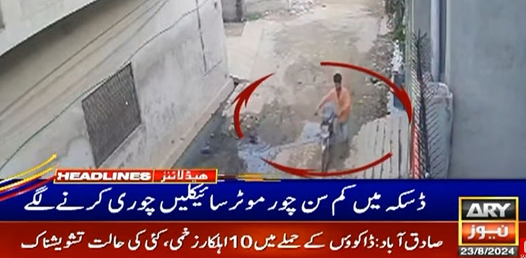 اے آر وائی نیوز کے مطابق ڈسکہ کم عمر بچے موٹرسائیکلیں چوری کرکے فرار ہوگئے، دو الگ الگ وارداتوں کی سی سی ٹی وی فوٹیج سامنے آگئی۔