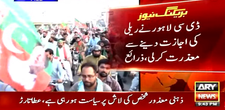 ڈی سی لاہور کا پی ٹی آئی کو ریلی کی اجازت دینے سے انکار