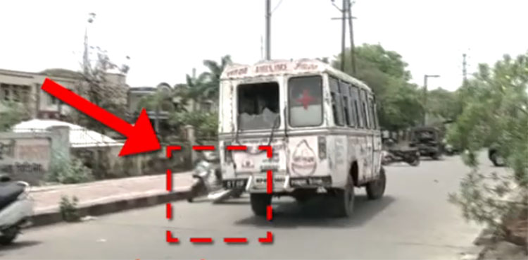 اسپتال میں کورونا سے ہلاک ہونے والے شخص کی لاش کو ایمبولینس کے ذریعے شمشان گھاٹ منتقل کیا جارہا تھا کہ جیسے ہی ایمبولنس اسپتال سے باہر نکلی تو گاڑی کا دروازہ کھل گیا اور لاش سڑک پر گرِ گئی۔