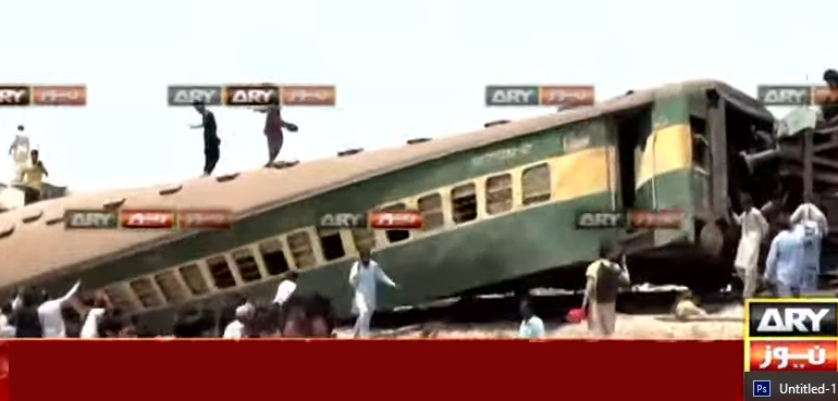 ڈی ایس ریلوے کے مطابق حادثے میں ٹرین کی 10 بوگیاں پٹری سے اتریں اور ان میں سے 6 بوگیاں الٹ گئی تھیں۔ جاں بحق اور زخمیوں میں بچے، بزرگ اور خواتین بھی شامل ہیں۔