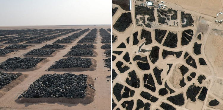 لیکن رواں ماہ کویت نے ان کروڑوں ٹائروں کو سعودی سرحد کے قریب سالمی نامی علاقے میں منتقل کردیا ہے اور اب اس جگہ پر پچیس ہزار نئے مقامات تعمیر کی جائے گی۔ اب نئے مقام پر ایک ری سائیکلنگ کمپنی ان پرانے ٹائروں کو استعمال کر کے رنگین فرشی ٹائلز بنا رہی ہے۔