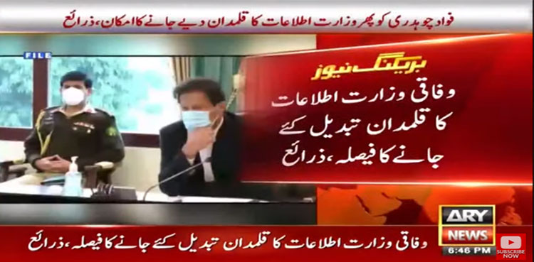 وفاقی وزیر فواد چوہدری کو ایک بار پھر وزارت اطلاعات کا قلمدان دیے جانے کا امکان ہے۔