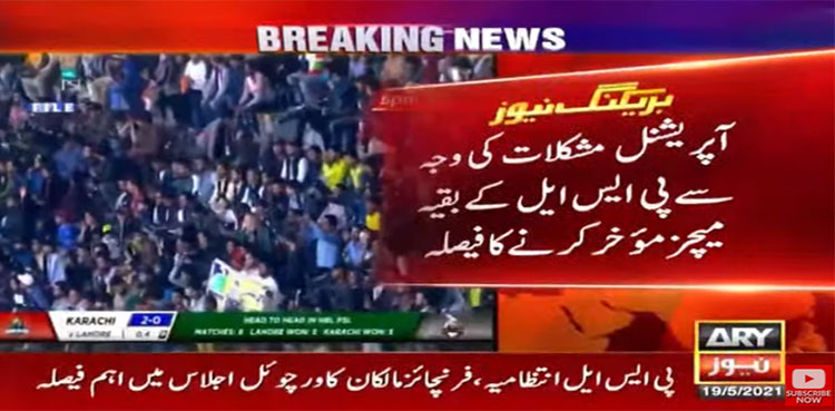 آپریشنل مشکلات کی وجہ سے پی ایس ایل کے بقیہ میچز مؤخر کرنےکا فیصلہ کیا گیا ہے۔