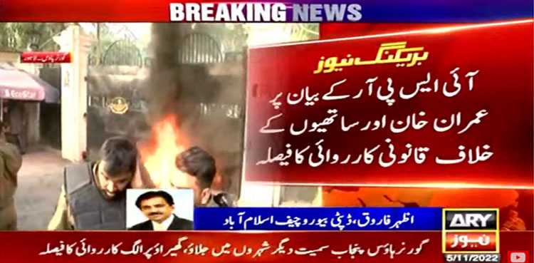 وفاقی حکومت نے آئی ایس پی آر کی درخواست پر چیئرمین تحریک انصاف عمران خان اور ان کے ساتھیوں کے خلاف قانونی کارروائی کا فیصلہ کرلیا۔