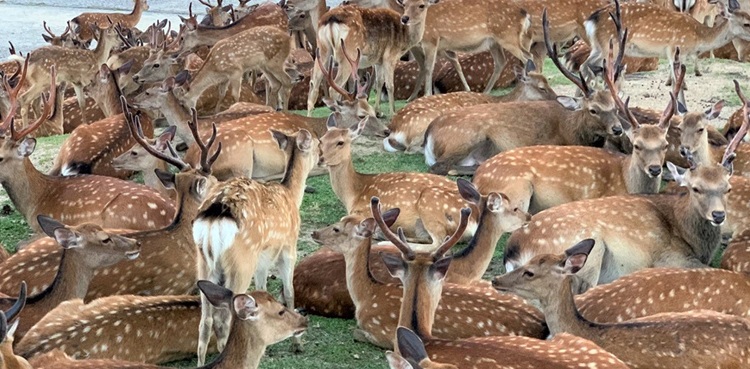 وائرل ویڈیو میں کچھ ہرنوں کو گاڑی کے اوپر سے چھلانگ لگاتے بھی دیکھا جاسکتا ہے۔
