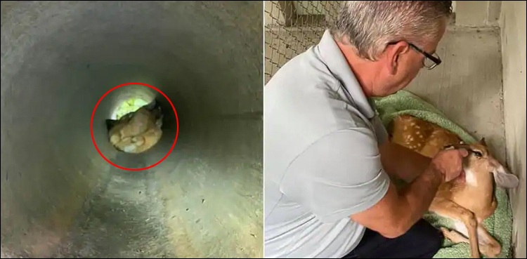 ان دنوں انٹرنیٹ پر ایک ہرن کو ریسکیو کرنے کی ویڈیو وائرل ہورہی ہے جو نکاسی آب (ڈرینج پائپ) کی نالی میں بری طرح سے پھنس گیا تھا اور وہاں سے اُس کے نکلنے کا کوئی راستہ نہیں تھا۔