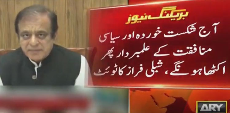 تفصیلات کے مطابق سماجی رابطے کی ویب سائٹ ٹوئٹر پر شبلی فراز نے ٹوئٹ کیا کہ آج شکست خوردہ اور سیاسی منافقت کے علمبردار پھر اکٹھا ہوں گے۔