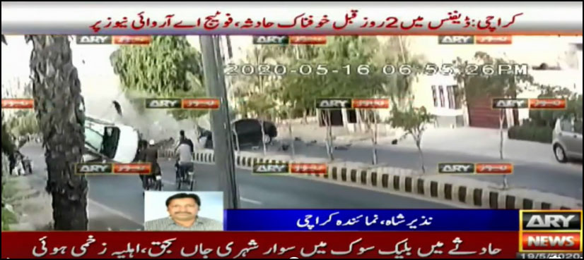 تفصیلات کے مطابق ڈیفنس ہاؤسنگ اتھارٹی کی خیابان بحریہ پر16مئی کو ہونے والے خوفناک ٹریفک حادثے کی سی سی ٹی وی فوٹیج اے ار وائی کو موصول ہوگئی، فوٹیج میں دیکھا جاسکتا ہے کہ جلد بازی کے باعث خوفناک تصادم ہوا۔